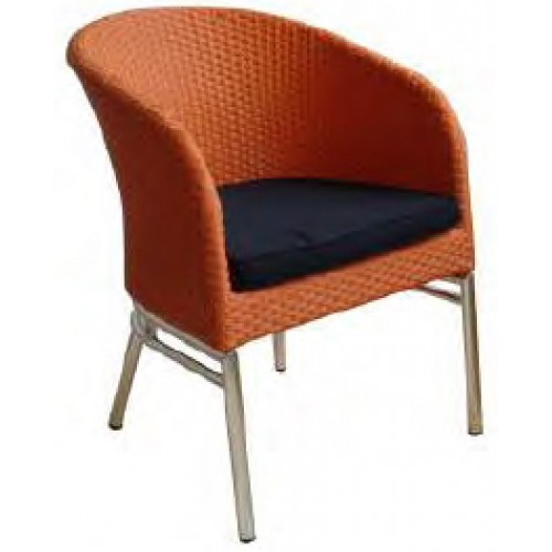 Chair seat and backrest wrapped in flat textured wicker with cushion